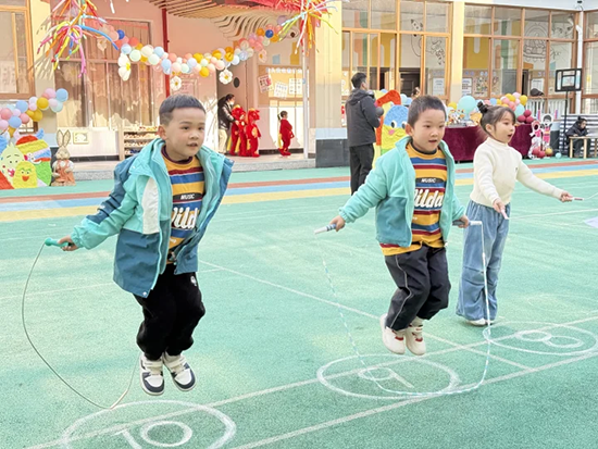熱場表演落下帷幕,各項比賽輪番登場。大班的“‘繩’采飛揚”跳繩比賽中,小選手們手握跳繩快速躍動,繩影翻飛間,是速度與耐力的比拼,更是成長與突破的見證,賽場紀錄被一次次刷新;中班的“爭分奪秒”拍球挑戰賽火熱開啟,一分鐘內,籃球在孩子們手中上下翻飛,專注的眼神、穩健的節奏,展現著協調能力與堅持精神;小班的“極速賽跑”充滿童趣,15米的賽道上,萌娃們奮力沖刺,每一步奔跑都凝聚著勇氣,每一次抵達都洋溢著喜悅。幼兒團體賽“超級障礙賽”更是將活動推向高潮,比賽結合幼兒園“原色動動動”特色項目,融合跑、跳、攀、鉆等多種動作,孩子們相互協作、奮勇闖關,在鍛煉肢體協調性與靈活性的同時,也深深體會到了集體榮譽感與團隊合作的意義。