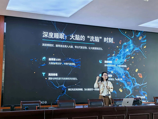 吳老師用自己親身經(jīng)歷故事開場,引起學(xué)生在“未來迷茫”“i人格自卑”“心理疾病標(biāo)簽限制”等心理困惑方面的共鳴,幫助同學(xué)們看到“人生充滿許多不確定性和可能性”,激發(fā)了同學(xué)們探究“如何塑造自己想要的生活”的主動(dòng)性和積極性。她結(jié)合實(shí)事案例為同學(xué)們科普了心理、人格等心理常識(shí),并分享心理專家駱宏博士團(tuán)隊(duì)開發(fā)的“七時(shí)間精神心理健康大模型”,帶領(lǐng)同學(xué)們學(xué)習(xí)如何通過睡眠、運(yùn)動(dòng)、專注、親自然、聯(lián)結(jié)、反觀、內(nèi)省七個(gè)緯度中簡單易行的方法,增強(qiáng)塑造健康生活的自信心和力量感。
