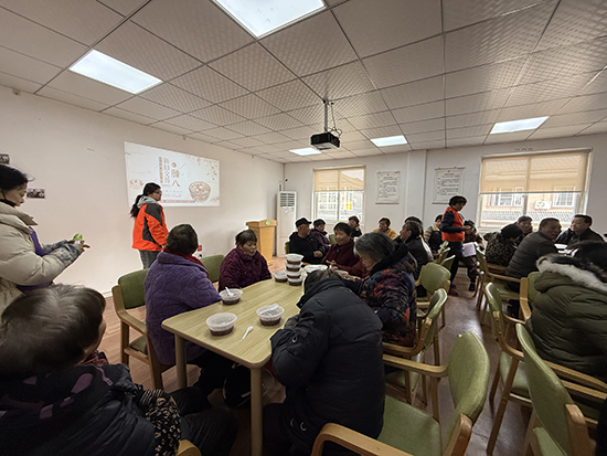 活動(dòng)現(xiàn)場(chǎng),志愿者們有序地將熱騰騰的臘八粥盛碗、分裝,小心翼翼地送到每位老人手中。“大爺,小心燙,慢慢喝!”“阿姨,這粥熬得爛,您放心吃!”一句句貼心的問(wèn)候、一個(gè)個(gè)溫暖的舉動(dòng),讓老人們臉上洋溢著幸福的笑容。今年82歲的張奶奶捧著溫?zé)岬闹嗤敫锌溃?ldquo;每年臘八都能收到這樣的關(guān)懷,這粥喝在嘴里,暖在心里,感謝成校和民政的孩子們一直惦記著我們!”活動(dòng)期間,志愿者們還與老人們圍坐閑談,關(guān)切詢(xún)問(wèn)身體狀況與生活需求,傾聽(tīng)他們講述臘八節(jié)的傳統(tǒng)習(xí)俗與過(guò)往故事,現(xiàn)場(chǎng)歡聲笑語(yǔ)不斷,儼然一幅溫馨和睦的“夕陽(yáng)暖照?qǐng)D”。