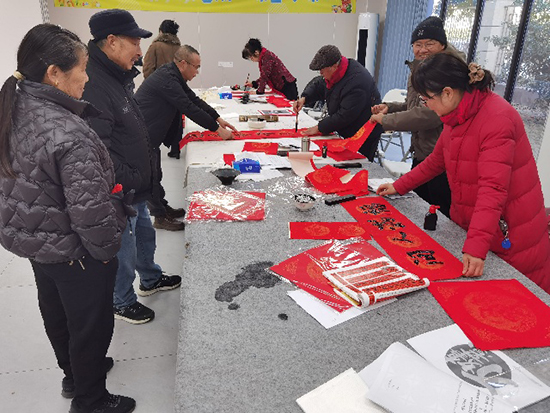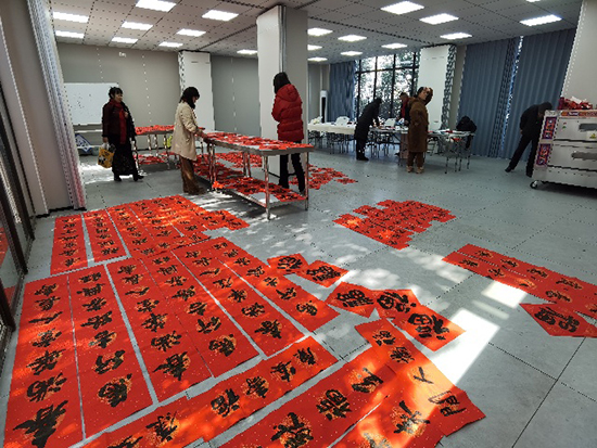 1月23日上午,安吉社區教育學院遞鋪分院教室內暖意融融、墨香四溢,一場主題為“學在成校樂享人生 喜迎新春福到萬家”的寫春聯送祝福活動在此溫馨啟幕。活動特別邀請了王連生、潘虹、周亞等書法造詣深厚的老師現場揮毫,學校校長何吉豐、副校長黃雙誼與邱立美、蔣惠翔等老師全程參與,與來自遞鋪街道各個村鎮、社區的50余位市民共同迎接新春的到來。?