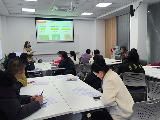 本次新課緊扣“共富”主題,聚焦“安吉好物”的英語表達。葛教授結合安吉白茶、竹制品、筍干等地方特色產品,通過“單詞卡+實物展示”的方式,逐一教學“Anji White Tea”“bamboo products”“dried bamboo shoots”等核心詞匯,并創新采用“中文讀音標注”輔助記憶,降低學習門檻。針對村民關心的“好物購”場景,她重點講解了“How much is it?”“How do you pay?”等實用句型,現場模擬買賣對話,讓學員在互動中掌握溝通技巧。