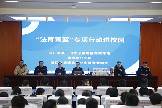 1月8日下午,由省莫干山女子強制隔離戒毒所與縣公安局聯合主辦的“法育青藍”專項行動走進德清職業中專,為在校學生帶來了一場生動的禁毒教育講座。活動旨在筑牢青少年毒品預防教育防線,為青春成長護航。來自財會、機電、服裝、烹飪等7個專業的200余名學生現場參與學習。