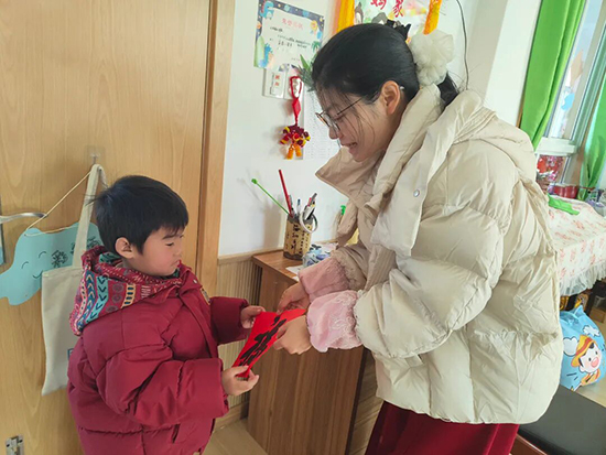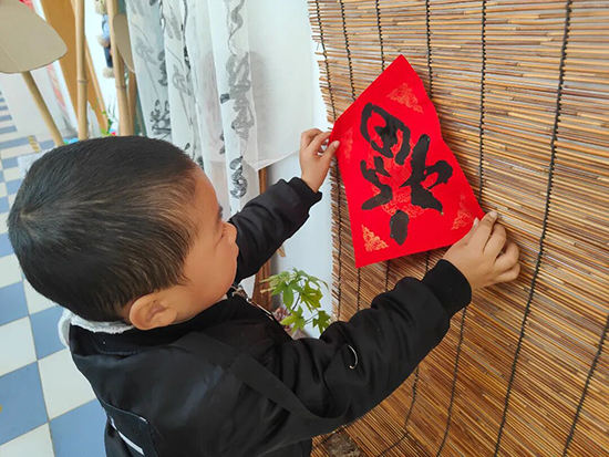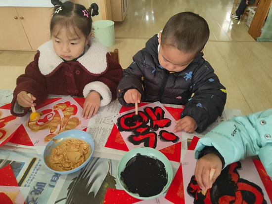 紅紙鋪展,古樸的拓印模板整齊排列,一場熱鬧的拓“福”活動歡樂啟幕。孩子們緊握拓印工具,蘸取顏料、均勻涂刷、輕壓模板,一個個帶著墨香的“福”字躍然紙上。隨后,大家親手將“福”字貼滿教室門窗與走廊,看著滿眼喜慶的紅色,成就感油然而生。孩子們還將親手拓印的“福”字一一贈予老師,在送福的溫馨互動里,傳遞著冬日的暖意與誠摯的祝福。