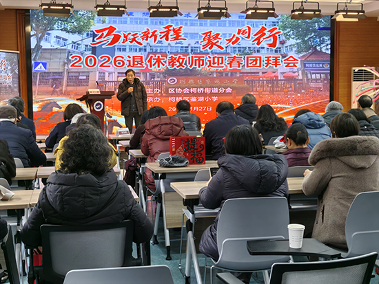 1月27日上午,紹興市柯橋區柯橋成人文化技術學校聯合柯橋區退休教師協會柯橋街道分會,在鑒湖小學報告廳舉行“2026退休教師團拜暨第十五個五年規劃報告會”。柯橋街道教育黨委書記金明東,柯橋區退教協會會長高渭民、副會長孫華劬、鑒湖小學校長范信子及柯橋街道退休教師95人參加。