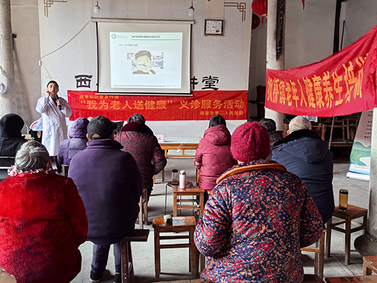 隨后,醫院內科主任醫師呂華軍帶來《腦卒中的危害及健康知識介紹》專題分享,圍繞腦卒中的現狀、腦血栓典型癥狀、卒中預防五項基本原則、腦血栓形成誘因等內容逐一講解。當老人們得知腦卒中就是平時說的中風后,更是聽得格外認真。呂華軍用“每2秒鐘就有一人發生腦卒中”的直觀數據,讓大家認識到腦卒中的普遍性,明確了卒中發病的六大重要危險因素,提醒老人提高警惕。他著重強調,一旦出現頭暈、肢體麻木、乏力等癥狀,必須及時重視、盡早就醫。在預防方面,呂華軍從合理飲食控體重、保持樂觀調心態、適當鍛煉減肥胖等方面給出具體建議,還特別告誡老年朋友,運動時要避開清晨過早運動等四項禁忌,牢記生病或身體不適時停止運動等四大注意事項。