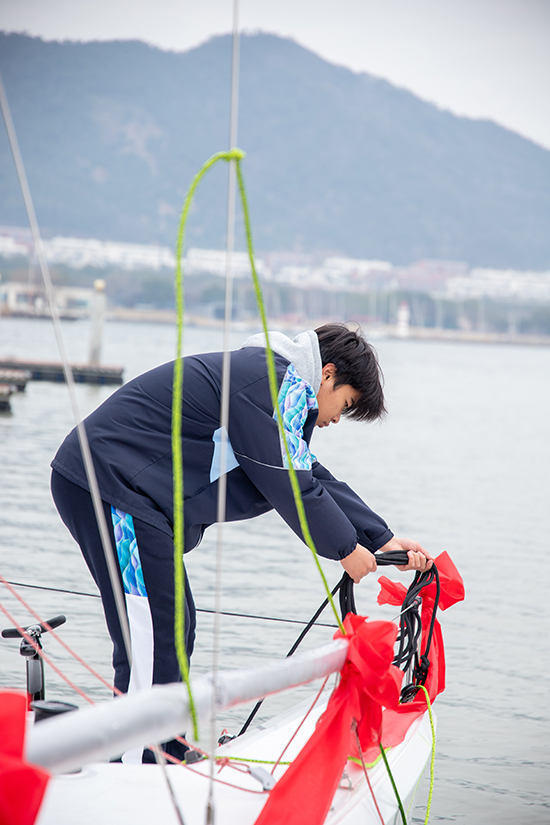 “我們第二艘帆船,正式命名為‘錢紅號’!”金立峰鄭重宣布。他介紹,這一命名是對學校精神傳承的深情致敬——錢紅是學校前身莫枝中學1988屆校友,曾榮獲亞運會冠軍、亞洲錦標賽冠軍,現任寧波市帆船帆板隊主教練。“校名雖更,初心不改,精神永續。”他說。