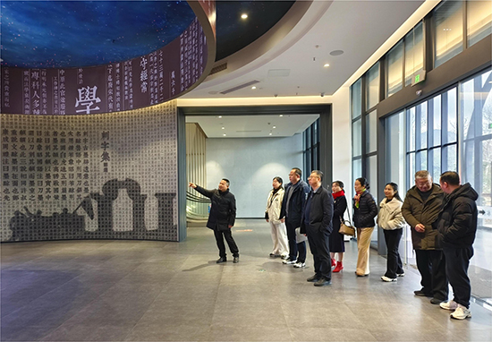 交流團先后參觀了法治文化主題館、枕碧書屋、枕碧碑廊等核心場域。朱春明校長依托展陳史料,系統介紹了“中國近代法學之父”沈家本先生主持清末修律、廢除酷刑、奠定近代法典體系等的歷史貢獻,深入闡釋其“變法圖強、融會中西”的法治思想。