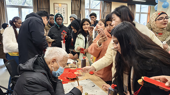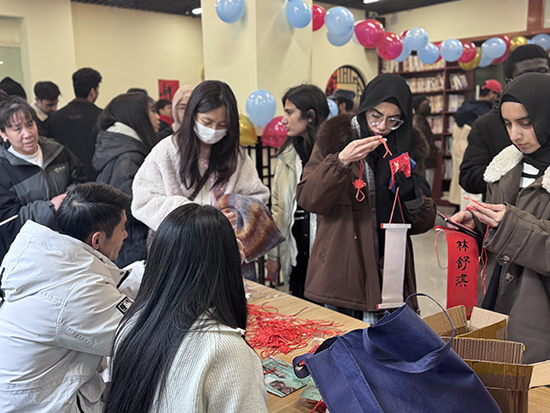 這場新春游園會遠不止是一場文化展示,更成為跨文化理解與交流的生動平臺。來自20多個國家的學生們在體驗中國傳統技藝的同時,也分享著自己國家的文化習俗。“在我的國家,我們也有類似新年的慶祝活動,但這是第一次親身體驗中國新年的傳統文化。”一位來自伊朗的姑娘在完成漆扇制作后,饒有興趣地研究起中國結的編法。