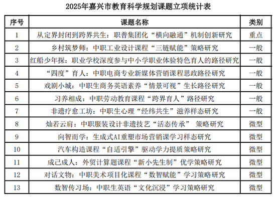 近日,2025年嘉興市直屬學校校本研修精品項目評比結果公布,嘉興市秀水中等專業學校申報的《中職“琢匠”雙師隊伍發展的校本實踐》獲得優秀。這一榮譽背后,是學校堅持“精技善教、匠師合一”核心理念,深耕師資培養的扎實實踐。