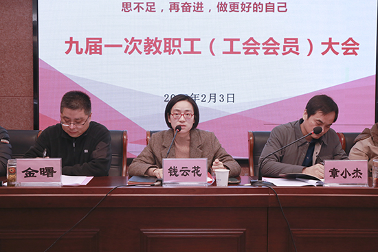 長(zhǎng)興縣教育局黨委委員、總督學(xué)、教育工會(huì)主席錢云花到會(huì)祝賀,充分肯定學(xué)院在開放教育、教師教育及社區(qū)老年教育等方面取得的成績(jī),并贊揚(yáng)工會(huì)“相親相愛向上一家人”品牌在促進(jìn)民主管理、增強(qiáng)凝聚力方面的作用。她對(duì)新一屆工會(huì)提出四點(diǎn)希望:強(qiáng)化政治引領(lǐng)、把握正確方向,聚焦主責(zé)主業(yè)、報(bào)備發(fā)展大局,健全民主機(jī)制、維護(hù)教職工權(quán)益,加強(qiáng)自身建設(shè)、提升履職能力,激勵(lì)教師發(fā)揚(yáng)“金釘子精神”,助力“學(xué)在長(zhǎng)興”教育品牌建設(shè)。