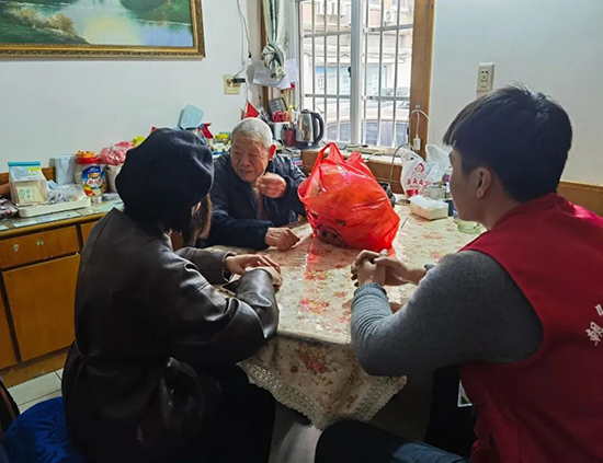 小隊成員與社區工作人員一同走進6戶高齡老人家中,耐心詢問日常起居、身體狀況,傾聽心聲訴求,陪老人嘮家常、話新年,用貼心的陪伴驅散冬日的寒涼與孤單。同時,社區為老人們送上定制“家禮”,提前送上新年的美好祝福,讓老人們在歲末年初,真切感受到社區大家庭的溫暖與關愛,真正實現“桑榆晚景皆溫暖,朝夕相伴不孤單”。