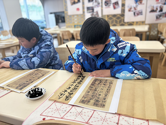 《真草千字文》筆法精熟,氣韻飛動,是書法史上承前啟后的經(jīng)典法帖。書法課以此為范本,讓孩子們在筆墨方寸間邂逅傳統(tǒng)美學(xué)。