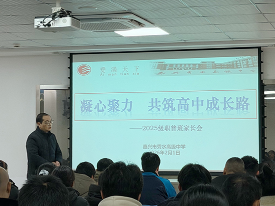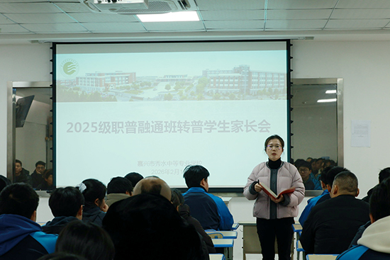2026年2月1日,嘉興市秀水高級中學四樓考務會議室座無虛席。這里正在舉行一場特殊的家長會——2025級職普融通班轉普家長會。30名通過選拔、獲得轉入普通高中學籍資格的學生及其家長悉數到場。嘉興市秀水中等專業學校與嘉興市秀水高級中學的校級領導出席會議。會議由秀水中專高考部主任萬冬梅主持。