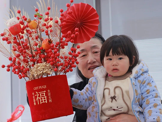 “大福桶DIY”將活動推向高潮。在工作人員的細致示范下,大家精心挑選紅果、銀杏、福卡、掛飾等材料,親手制作寓意“福氣滿桶”“紅運當頭”的新春福桶。現場氣氛熱烈,大家互相交流插配技巧,齊心協力將一只只福桶裝點得紅紅火火、獨具特色。指尖流轉間,一件件年味濃郁、匠心獨具的作品陸續完成。這不僅是一場生動的手工創作,更是一次沉浸式的新春文化體驗,老人們在專注創作與友好協作中,真切感受親手創造美好的喜悅,讓對幸福生活的向往變得更加真切可感。