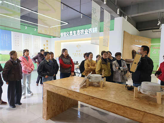 當日上午,陽光和煦,老莊村婦女代表們在學校工作人員的帶領下,懷著期待的心情齊聚義泉農場,開啟了一場生動實用的生態(tài)農業(yè)探索之旅。作為安吉本地深耕生態(tài)農業(yè)的標桿陣地,義泉農場始終踐行“綠水青山就是金山銀山”理念,打造了集生態(tài)種植、多元種養(yǎng)、品牌培育于一體的現(xiàn)代農業(yè)模式,不僅培育出榮獲“浙江省好稻米金獎”的優(yōu)質稻米,還推出了“義泉大叔”“米姑娘”等特色農產品品牌,在生態(tài)農業(yè)發(fā)展與品牌化經營道路上走出了特色之路,更為周邊鄉(xiāng)村發(fā)展提供了可借鑒的共富范本。