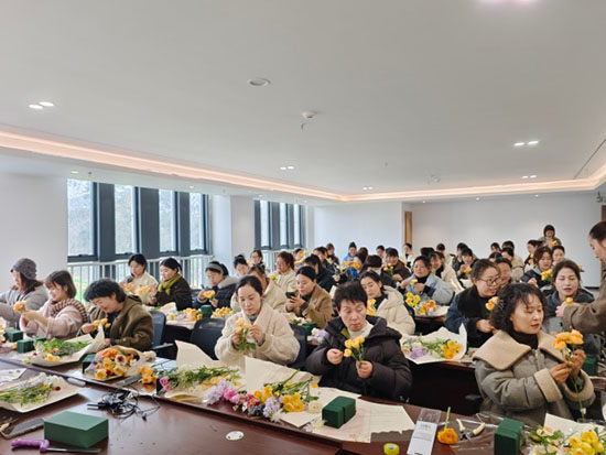 春和景明,花香漸濃。為慶祝第116個“三八”國際婦女節,豐富轄區女性精神文化生活,3月6日中午,安吉縣社區教育學院梅溪分院(梅溪成校)培訓室內暖意融融、花香四溢,第一期插花培訓活動如期舉行,數十名女性學員齊聚一堂,在指尖生花中感受傳統花藝之美,共迎節日到來。