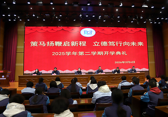 2026年3月6日上午,紹興財經旅游學校舉行2025學年第二學期開學典禮。學校黨委書記裘東霞、校長王決芳、警官程修海及校級領導班子出席了典禮,典禮由副校長張江主持。