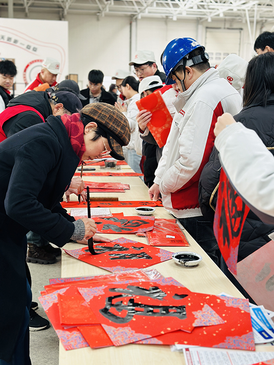 2月10日,師生們的送福腳步來到了鐘埭街道長城汽車平湖分公司的生產車間。作為學院“教育共富”下鄉活動的重要組成部分,學院老年開放大學書法班的師生們將書畫桌案搬到了企業生產一線。活動現場紅紙鋪展,墨香四溢,師生們熱情高漲,揮毫潑墨,筆走龍蛇。一個個蒼勁有力或靈動秀美的“福”字,一副副寓意吉祥、滿載祝愿的春聯躍然紙上。短短時間,三百多幅飽含深情厚誼的春聯和“福”字作品新鮮“出爐”,贈予企業員工。職工們手捧油墨未干、字跡飄香的春聯,臉上洋溢著幸福的笑容,感受到了來自學院的誠摯關懷與新歲祝福。同時,學院招生團隊也將學歷提升的新政策送到企業一線,真正做到了教育服務下沉,助力區域共富。