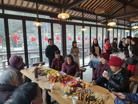 用餐結束大家圍坐在一起,舉行了暖心的茶話會,品清茶、嘗果點、拉家常,暢談生活感悟與村莊變化,現場歡聲笑語不斷,洋溢著濃濃的節日溫情。