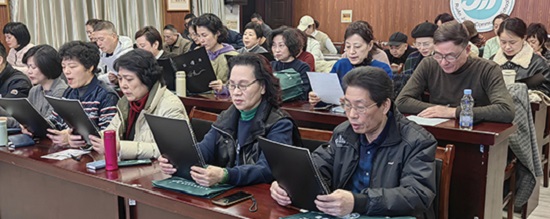 簡(jiǎn)短而隆重的開班儀式結(jié)束后,白舒婷老師隨即帶領(lǐng)學(xué)員們進(jìn)入首堂聲樂課程。她從呼吸方法入手,細(xì)致講解演唱中的氣息控制技巧,并現(xiàn)場(chǎng)演示如何正確打開膈肌。學(xué)員們?nèi)褙炞ⅲS老師的指導(dǎo)認(rèn)真練習(xí)。隨后,大家共同學(xué)唱2026年春晚歌曲《立春》,在實(shí)踐互動(dòng)中初步領(lǐng)略聲樂的魅力,課堂氣氛熱烈而融洽。