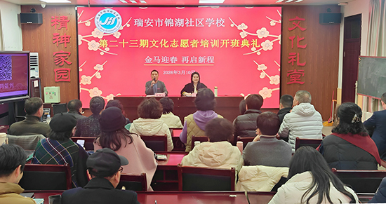 “春風(fēng)送暖,萬(wàn)物復(fù)蘇。在這充滿生機(jī)與活力的三月,我們因同一個(gè)夢(mèng)想相聚,因同一份熱愛同行。”3月10日晚,瑞安市錦湖社區(qū)學(xué)校文化禮堂內(nèi)燈火通明,瑞安市錦湖社區(qū)學(xué)校第二十三期文化志愿者聲樂培訓(xùn)班開班典禮在此溫馨舉行。來自全市各行業(yè)的近50名文化志愿者滿懷熱忱,齊聚一堂,共同踏上2026年馬年文化志愿服務(wù)的新征程。