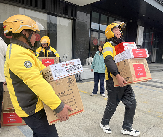 儀式結束后,愛心腳步卻沒有停歇。基金會與社區工作人員帶著物資,奔赴祥成江南大廈快遞站點,走近另一群可敬可愛的人——外賣小哥。他們穿梭于城市的大街小巷,風雨無阻,只為將熱騰騰的飯菜準時送達。他們是城市運轉的“毛細血管”,是新就業群體的縮影。“平時都是我們給別人送東西,今天收到別人送來的溫暖,心里特別開心。”一位外賣小哥接過牛奶和泡面,開心的笑著回答。