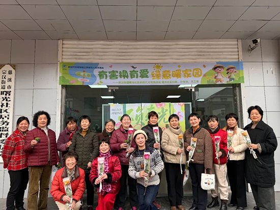 活動現(xiàn)場溫馨有序。宗漢社區(qū)教育中心工作人員與社區(qū)志愿者精心布置、細致服務(wù),為到場的36名女性居民送上鮮花與節(jié)日祝福,向長期以來扎根家庭、服務(wù)社區(qū)、奉獻社會的巾幗群體致以誠摯敬意。活動中,大家積極參與“有害垃圾兌換綠植”環(huán)節(jié),主動上交廢電池、過期藥品等有害垃圾,兌換多肉、綠蘿等綠色盆栽。環(huán)保志愿者現(xiàn)場普及垃圾分類知識,讓綠色生活理念深入人心。
