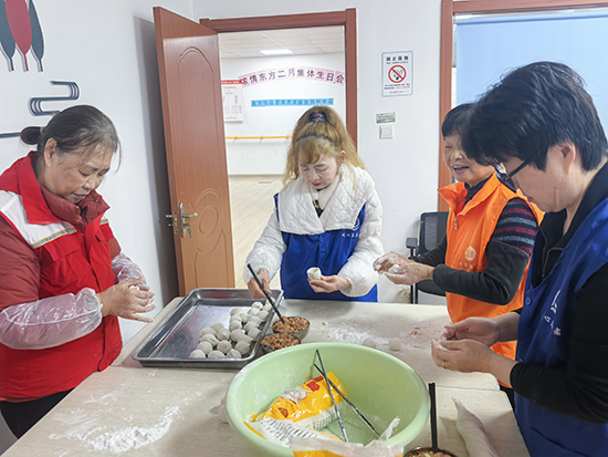 正月十五元宵圓,情暖桑榆意更濃。2月27日,民族民間舞蹈班班長(zhǎng)舒娜在東方社區(qū)居家養(yǎng)老服務(wù)中心做湯圓,與老人們一起過(guò)元宵節(jié)。同時(shí),她還參加社區(qū)組織的上門慰問(wèn)活動(dòng),將熱氣騰騰的湯圓與節(jié)日祝福送到獨(dú)居老人家中,讓“空巢”變“暖巢”,讓敬老愛(ài)老的傳統(tǒng)美德在元宵佳節(jié)落地生根。