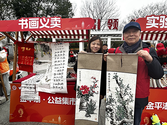 3月3日,由平湖市社會(huì)工作部、老干部局和市團(tuán)委組織的“志愿之光映平湖 雷鋒薪火暖人心”——2026年平湖市“3·5”學(xué)雷鋒志愿服務(wù)主題月啟動(dòng)儀式在鐘埭櫻花小鎮(zhèn)舉行。書法班龔國(guó)銘老師,學(xué)員顧國(guó)英、鐘志鴻、何鑫華等在會(huì)場(chǎng)專設(shè)“書畫義賣”攤位,亮出一幅幅精美的書法國(guó)畫作品,給活動(dòng)增添了濃厚的傳統(tǒng)文化氣息,觀摩者絡(luò)繹不絕。義賣活動(dòng)所得全部捐獻(xiàn)給平湖市慈善總會(huì)。