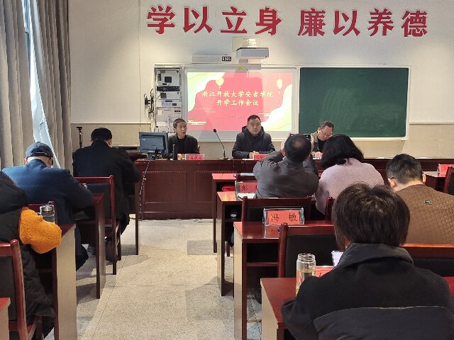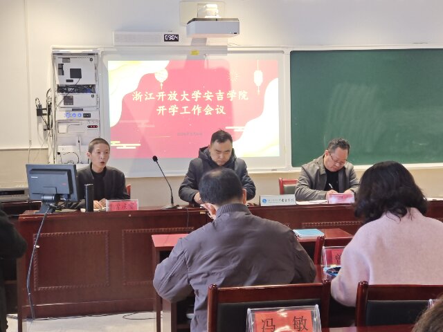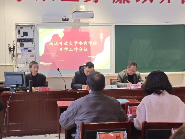 3月6日上午,浙江開放大學安吉學院在四樓會議室召開26春開學工作會議,全體教師參加。學院黨支部委員、教務處主任曾慶富就近期教務教學相關工作進行了布置,對畢業論文寫作、學信網圖像采集、繳費等事項的完成情況給予通報,并明確了各項工作具體的時間節點。