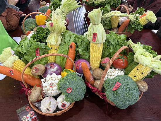 經(jīng)過一番精心創(chuàng)作,一棵棵普通的蔬菜,在學員們的巧手下,變成了一束束造型別致、色彩鮮艷的“鮮花”,有翠綠的生菜搭配火紅的小番茄,有飽滿的青椒點綴嫩黃的玉米,每一束都充滿了生活氣息和創(chuàng)意美感。學員們手捧著自己的作品,相互展示、拍照留念,分享創(chuàng)作的喜悅,現(xiàn)場歡聲笑語不斷。