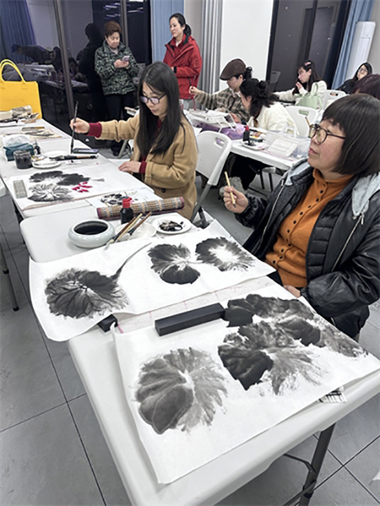 國(guó)畫課程以“荷花”為創(chuàng)作主題,貼合大眾審美與傳統(tǒng)文化需求。授課教師從荷花的形態(tài)勾勒、線條運(yùn)用、色彩暈染等基礎(chǔ)技巧入手,耐心講解每一個(gè)創(chuàng)作細(xì)節(jié),針對(duì)學(xué)員的不同基礎(chǔ)進(jìn)行個(gè)性化指導(dǎo),從落筆的輕重緩急到上色的濃淡層次,細(xì)致點(diǎn)撥、逐一糾正。學(xué)員們凝神靜氣、提筆創(chuàng)作,在筆墨丹青間感受國(guó)畫藝術(shù)的韻味,在動(dòng)手實(shí)踐中提升審美素養(yǎng),現(xiàn)場(chǎng)彌漫著濃厚的文化氣息。