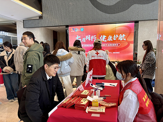 活動現場暖意涌動,紅十字會志愿者結合辦公室常見場景,現場演示心肺復蘇與海姆立克急救法,不少職工駐足圍觀、主動上手實操;中醫志愿者通過推拿、針灸,為久坐辦公人群有效緩解肩頸酸痛;與此同時,耳鼻喉科、中醫內科、健康咨詢、血壓血糖測量、耳穴貼敷、體檢報告解讀、平安宣講等服務同步開展,醫護人員與志愿者耐心細致地解答各類疑惑,用專業守護健康、用溫情傳遞關愛。