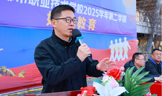 陳肖龍校長在典禮上致辭。他回顧了學校過往辦學成果,明確2026年是學校發展的關鍵之年,并結合2026馬年“奔騰、奮進”的寓意,圍繞“力量從何而來”,為全體師生分享了五點啟示:一是依托學校“紫藤花感恩德育”,讓感恩成為每個人的精神底色,這是力量的根基;二是踐行教育部“健康第一”理念,堅持運動、調節心態,以健康身心作為奮斗的基石;三是學習冬奧健兒“更快、更高、更強——更團結”的精神,在實訓和各類競賽中,詮釋精益求精的工匠精神;四是將個人成長融入國家發展,練就過硬技能,努力成為能工巧匠、大國工匠;五是自覺遵守校規校紀、踐行文明禮儀,共同守護和諧有序的校園環境。同時,他針對性勉勵高三學子全力沖刺高考,高一、高二學子夯實基礎、厚積薄發,叮囑全體教師堅守育人初心,護航學子成長。