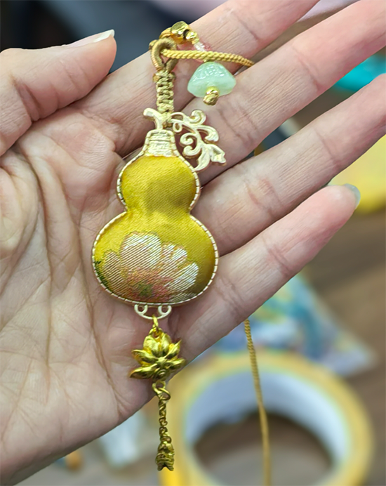 經(jīng)過(guò)近兩小時(shí)的巧手創(chuàng)作,一個(gè)個(gè)造型靈動(dòng)、紋樣精美的馬年掛件相繼誕生,宋錦的艷麗與馬年元素相映成趣,兼具觀賞性與紀(jì)念意義。看著自己親手制作的成品,居民們臉上滿(mǎn)是成就感,紛紛拍照留念,分享這份非遺創(chuàng)作的喜悅。