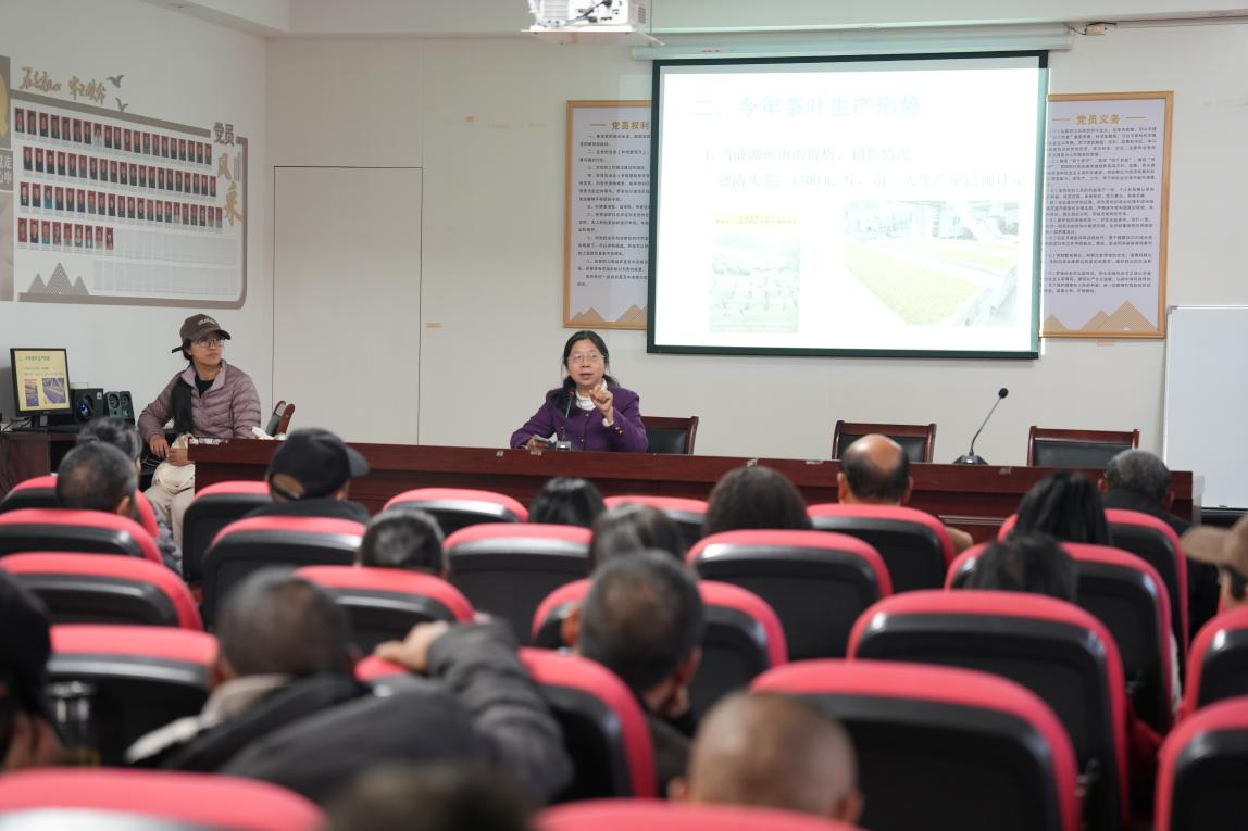 培訓緊扣2026年春茶生產核心要點,精準解讀行業趨勢與技術要點。學校特邀湖州市農經站柳麗萍站長授課,柳站結合當前氣候趨勢預測、市場需求變化、茶葉品牌建設及產業政策導向等因素,對春茶的采摘時間、產量預估、鮮葉價格走勢及銷售渠道拓展等方面進行了全方位解讀。著重指出,面對不斷變化的市場環境,茶農和茶企要提前謀劃,在提升茶葉品質、打造特色品牌和拓展線上銷售渠道上下功夫,增強市場競爭力。