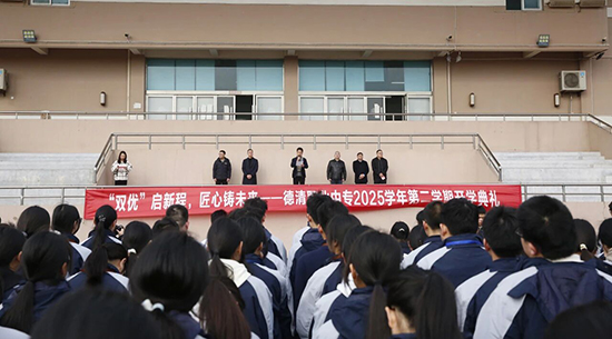 新的學期,新的起點。本學期開學典禮不僅是一次總結與表彰,更是一次動員與起航。德清職業中專全體師生將以“雙優”建設為契機,秉持匠心,錘煉技能,在技能報國的時代洪流中,蹄疾步穩,一馬當先!(呂海燕 石海鋒)