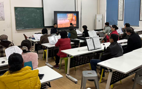 課堂上,吳商老師精神矍鑠,耐心細致地講解著電吹管演奏的技巧與要領。從氣息控制到指法配合,從樂曲情感表達到節奏把握,他一一示范,手把手指導學員練習。學員們專注聆聽,認真練習,反復揣摩,樂聲時而婉轉如溪流,時而激昂似江河,在老師的引領下,一首首熟悉的旋律在教室里回蕩,傳遞著銀齡學員對生活的熱愛與對藝術的追求。