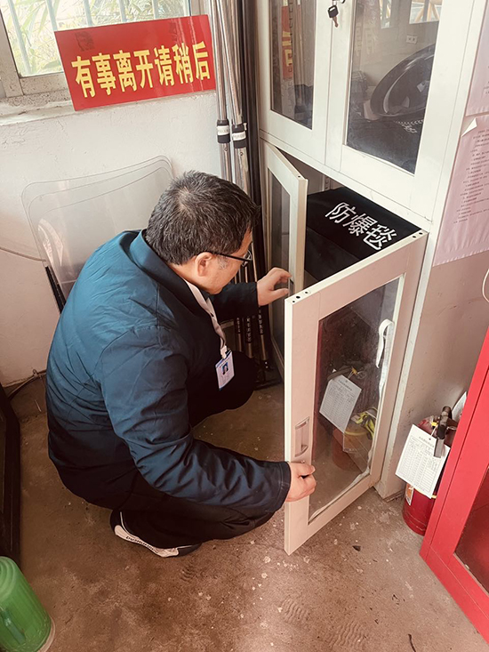 在校門區(qū)域,督查組仔細(xì)核查減速帶、警示標(biāo)志設(shè)置情況,確認(rèn)石墩、水碼及硬質(zhì)防沖撞設(shè)施配備到位、擺放規(guī)范,拒馬四周均安裝插銷固定。隨后,督查組實地巡查校園圍墻內(nèi)側(cè)、籃球架、閑置宿舍樓、原食堂餐廳及車棚等重點(diǎn)區(qū)域,所有閑置房屋均規(guī)范上鎖并落實專人管理。在校長室,督查組與俞則宇校長、安管主任駱吉鋒一同檢查安全工作相關(guān)制度,學(xué)校組織領(lǐng)導(dǎo)、人員職責(zé)分工、應(yīng)急預(yù)案體系健全完善并及時更新,督查組要求對不完善之處盡快補(bǔ)充整改。