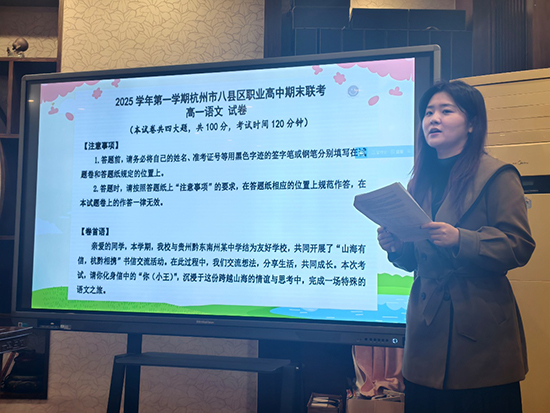 塘棲職高劉雪珂老師對高一測評進行深入分析:突出情境設(shè)計與思維層級考查,素材立足課內(nèi),兼顧過去、當(dāng)下與未來三個維度。她提出教學(xué)應(yīng)采用雙向設(shè)問、任務(wù)驅(qū)動、三級臺階設(shè)計,將基礎(chǔ)知識融入真實任務(wù),強化微寫作與口語轉(zhuǎn)書面表達(dá)訓(xùn)練。