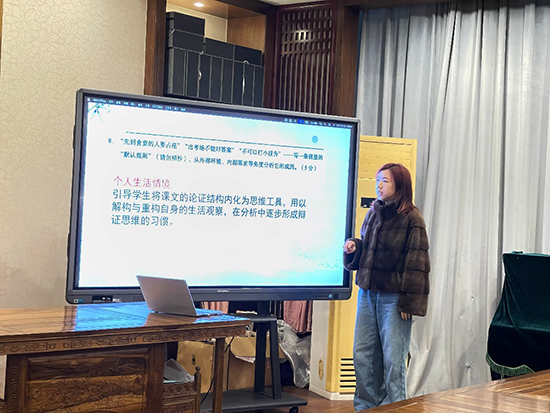 喬司職高徐威儀老師通過對比高二統(tǒng)測與近三年人人賽試題,指出兩類考試均注重情境化與思辨性,主觀題占比不斷提高。她結(jié)合學(xué)情指出,學(xué)生在信息提取、論證邏輯、批判思維等方面存在短板,建議以專題教學(xué)、情境賦能、互文閱讀為抓手,在復(fù)習(xí)中兼顧基礎(chǔ)鞏固與思維訓(xùn)練,將能力培養(yǎng)融入閱讀與寫作教學(xué)全過程。
