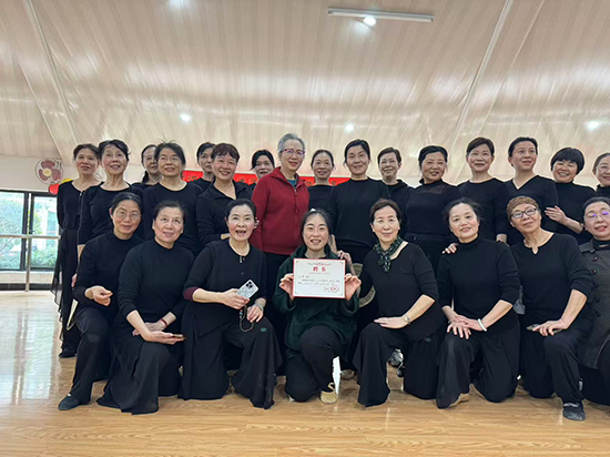 “一二三四,二二三四,抬手、轉身,保持微笑……”伴隨著輕快悠揚的旋律,學員們全神貫注地聆聽講解、觀看示范,跟著老師的節奏反復練習每一個動作。盡管部分學員是初次接觸舞蹈,動作略顯生疏,但大家學習熱情高漲,絲毫沒有懈怠,抬手、轉身、邁步,每一個動作都認真投入,彼此間還不時相互提醒、互相鼓勵,課堂學習氛圍十分濃厚。歡聲笑語中,學員們在舞步的切換中舒展身體,在音樂的韻律中放松心情,既鍛煉了身體,又感受了舞蹈帶來的樂趣。