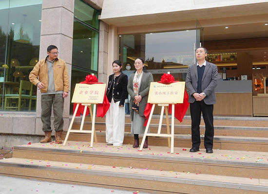 在全場(chǎng)熱烈的掌聲中,湖州交通技師學(xué)院校長張默晗與國家級(jí)非遺傳承人張小鳳共同為“張小鳳工作室”揭牌,副校長平平與企業(yè)老師吳瑕共同為“企業(yè)學(xué)院” 揭牌。這不僅是校企雙方深化合作的重要基石,更是推動(dòng)非遺傳承與職業(yè)教育協(xié)同發(fā)展的生動(dòng)實(shí)踐,標(biāo)志著以技能傳承、人才培育為核心的校企專項(xiàng)合作平臺(tái)正式落地。“張小鳳工作室”落戶學(xué)院,將成為展示精湛湖筆制作技藝的重要窗口,將為師生們提供一個(gè)近距離觀摩學(xué)習(xí)、親手體驗(yàn)這集傳統(tǒng)古法與國禮品質(zhì)于一身的非遺技藝的寶貴平臺(tái)。