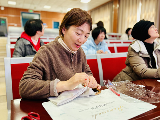 3月19日,學校舉辦國風竹節(jié)手袋制作活動,吸引眾多女教工參與。活動現(xiàn)場,大家圍坐一堂,穿針引線,細致縫制,交流手工技巧,現(xiàn)場氣氛輕松融洽。通過親手制作兼具傳統(tǒng)韻味與實用價值的竹節(jié)手袋,老師們在忙碌工作之余放松身心,感受手作之美,體味匠心之韻。