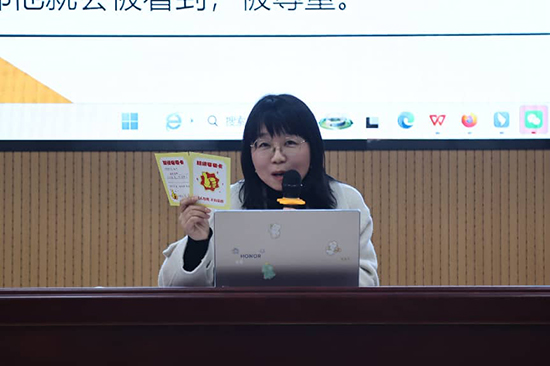 金建風老師以《以“敬”立心 引領學生思想航向》為題,分享在學生思想教育方面的探索與思考。她借助“夸夸卡”這一載體,引導學生“敬畏規則”“尊敬師長”“敬愛同伴”,在潤物無聲中幫助學生扣好人生第一粒扣子。分享兼具理論深度與實踐溫度,為與會教師帶來深刻啟發。