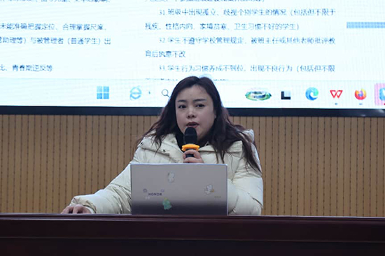 為助力班主任更好備戰班主任基本功競賽“情景模擬征題”項目,陳易青老師作專題輔導。她圍繞選題方向、情境設計、要點撰寫、邏輯呈現等方面,結合實例逐一拆解,細致講解備賽要點與答題技巧,幫助老師們理清思路、緩解壓力、增強信心。
