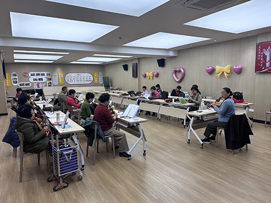 葫蘆絲婉轉、越劇悠揚、墨香四溢、舞步翩躚……截至目前,葫蘆絲班、越劇班、書法班、舞蹈班、走秀班、合唱班、國畫班、朗誦班、京劇班、聲樂班、民樂班、柔力球班等12個班級已全面開班,非洲鼓班也將在4月正式奏響節拍。社區文化活動室里琴聲裊裊、歡聲笑語,一派欣欣向榮的生動景象。