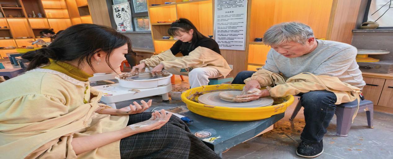 本次培訓(xùn)可謂創(chuàng)意無(wú)限,培訓(xùn)對(duì)象為轄區(qū)內(nèi)的陶藝制作愛(ài)好者,學(xué)員習(xí)陶藝,非遺續(xù)根脈。96名愛(ài)好者借九巖村陶藝坊通過(guò)三場(chǎng)三個(gè)下午的制作培訓(xùn),初步學(xué)會(huì)了拉坯、上色、上釉、上窯等步驟。學(xué)員們?cè)趯I(yè)師傅的指導(dǎo)下從揉泥塑形,感受陶土在手中成型的奇妙,到學(xué)習(xí)施釉,小心翼翼地為坯體穿上“青翠外衣”。每個(gè)步驟都充滿了挑戰(zhàn)與樂(lè)趣。大家親身實(shí)踐,體會(huì)著青瓷“青翠潤(rùn)綠, 剔透晶瑩”的匠心之美。