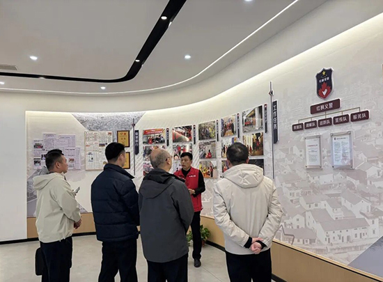 在諸暨市公安局相關領導陪同下,考察組一行走進紅楓義警工作站,先后參觀了義警文化展示墻、發展歷程展區等陣地,詳細了解隊伍建設與工作開展情況。
