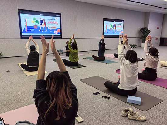 為豐富企業職工精神文化生活,傳遞健康生活理念,3月中旬,濱江區社區學院長河分院高新產業社區教學點首期瑜伽課在阿里中心杭州濱江正式開課,學員們齊聚一堂,在一呼一吸、一伸一展間,開啟身心舒緩之旅。